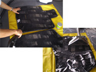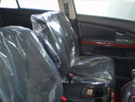 清掃後のシートは完全には乾燥しておりません。清掃後でもすぐに乗車できるようにシートをビニール養生で覆います。