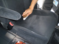 目立ったシミなどをシミ抜きした後、専用薬剤を使ってシートの汚れを浮き上がらせます。