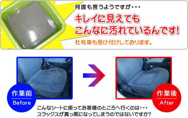 中古車を購入したのだが、シートの汚れが気になる表面はキレイですが、シートに染み込んだ汚れをそのまま引き継ぐ事になっていませんか…