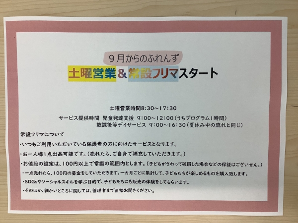 9月からのふれんずについて