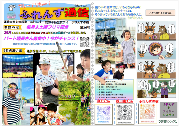 ふれんず通信最新号(10月)発行されました。