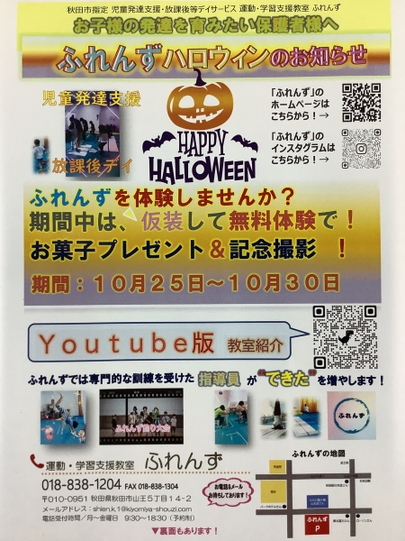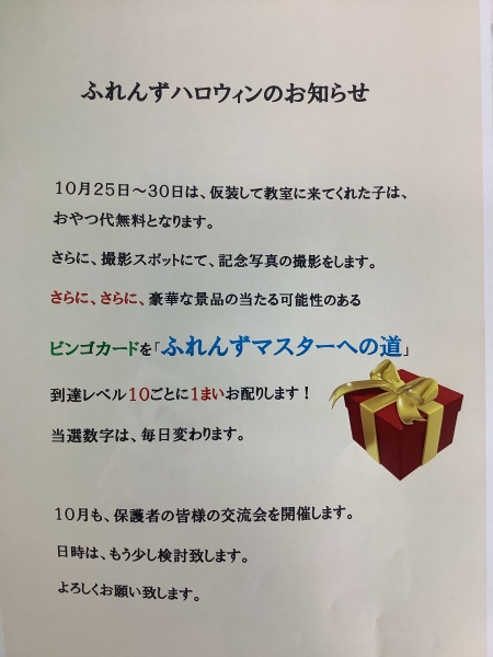 もちろん、いつもふれんずを利用してくれている子どもたちにも、ハロウィンスペシャルウィークのお知らせがあります。