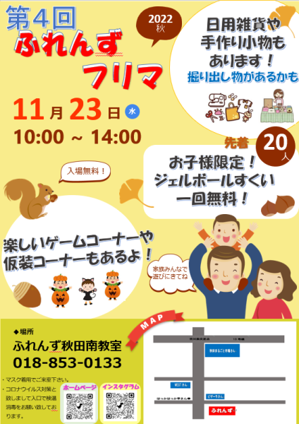 今回のフリマは、ふれんず秋田南教室が会場となります。