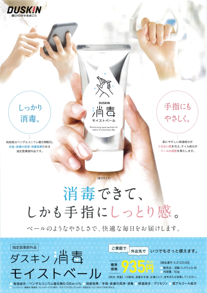 消毒剤で手が荒れやすい方、外出先でも手軽に消毒。