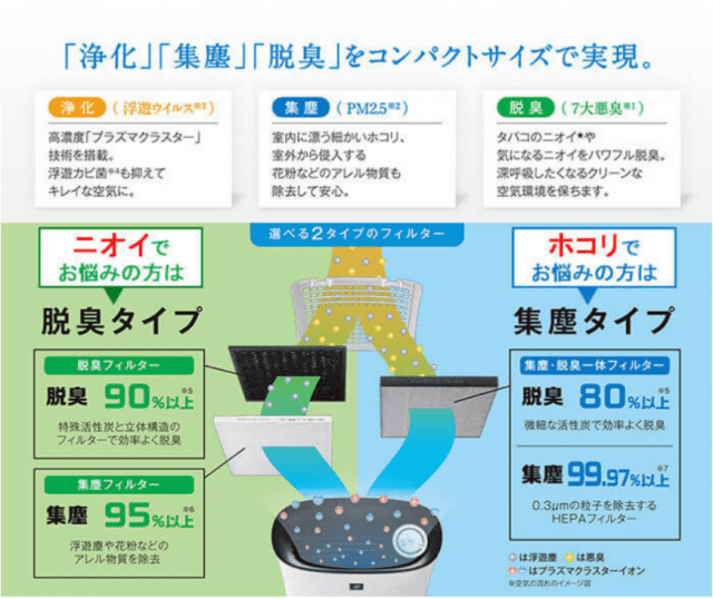 「脱臭」「集塵」「浄化」をコンパクトサイズで実現。プラズマクラスター搭載